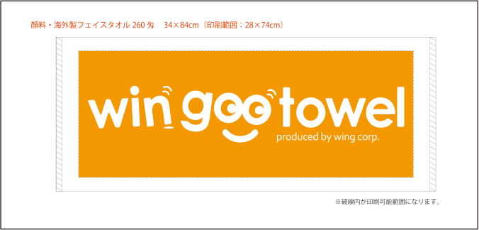 例)ふち有りプリント フェイスタオル260匁 の校正イメージ図です。