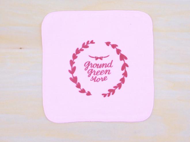 グランドグリーンストア様は、女性向けのファッションブランドを取り扱う人気店舗です。そこで、女性向けのタオルデザインとするためピンク生地のタオルにピンクインクを使用して、可愛らしい見た目のオリジナルタオルが仕上がりました。