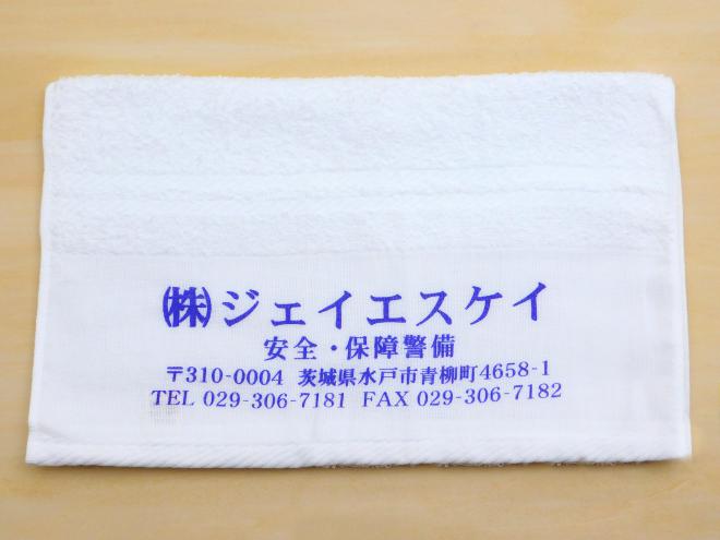 白のフェイスタオルを生地として使用した、名入れタオルです。大阪泉州産の白生地タオルに、ネイビーでの印刷はまさに安全保障!安心して任せられるような仕上がりになっております!