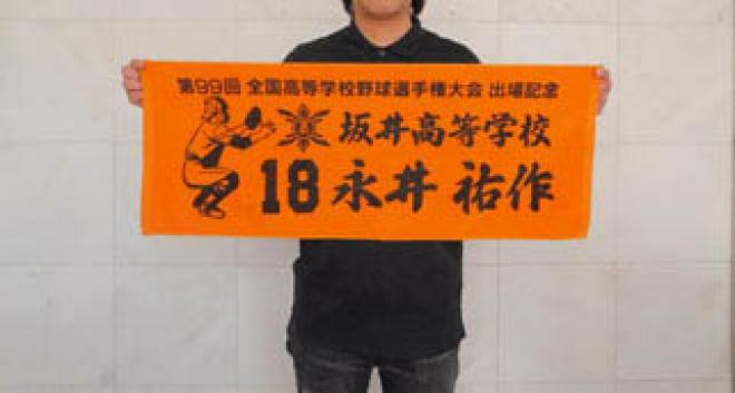 坂井高校のイメージカラーをベースに選手の名前を入れたもので、とても心に残る記念オリジナルタオルに仕上がりました。