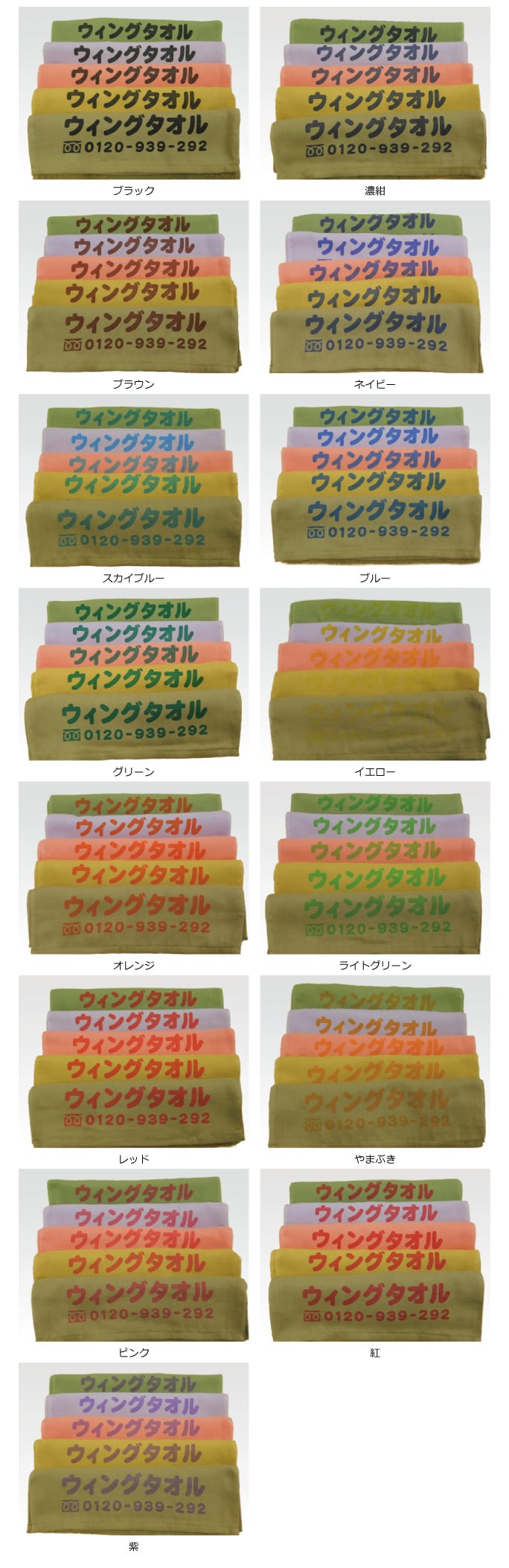 印刷色によって、タオル生地色の影響を受けることをご考慮ください。