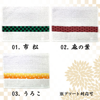 | 生地の種類 | 市松・麻の葉・うろこの3種類 パイル地は通常のパイル地ではなく、織り柄仕様です。 |