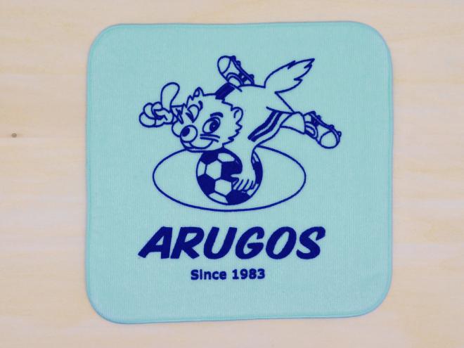 ブルーのミニタオルを生地として使用した、ふち有り(顔料)プリントのオリジナルタオルです。大人気のネイビーで印刷させていただきました。弊社のミニタオルには20cm×20cmのMサイズと25cm×25cmのLサイズがございます。