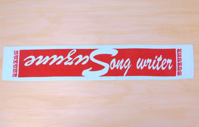 ブルーのマフラータオルを生地として使用した、ふち有り(顔料)プリントのオリジナルタオルです。青は信頼感、清潔感、安定感、冷静さなどをイメージし、赤は情熱、躍動感をイメージさせてくれる色ですね!青と赤の組み合わせがばっちりです!