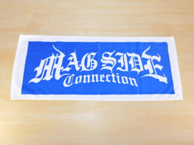 白のフェイスタオルを生地として使用した、ふち有り(顔料)プリントのオリジナルタオルです。ブルーのインクを使用し印刷しました。文字の白の部分はフェイスタオルの生地色をそのまま活用しております。