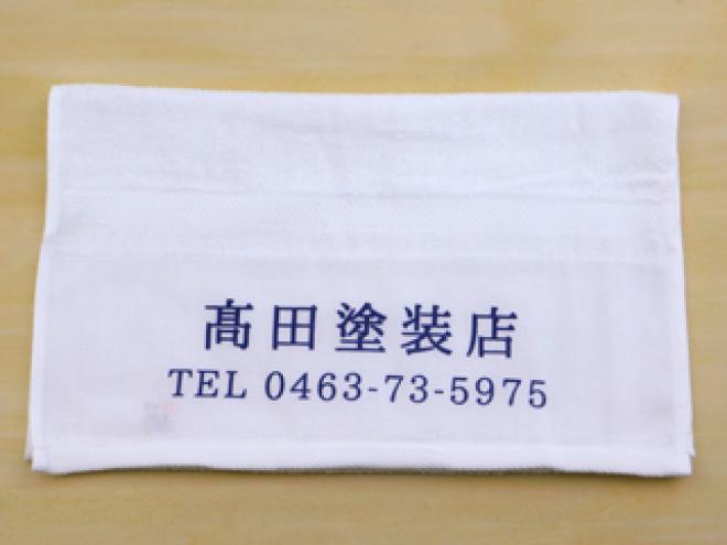 白のフェイスタオルを生地として使用した、名入れタオルです。根強い人気の濃紺での名入れ印刷です。濃紺インクでの印刷は生地色をほとんど選ばないのが特長です。大阪泉州産の高品質タオルなのでふんわり柔らかです。