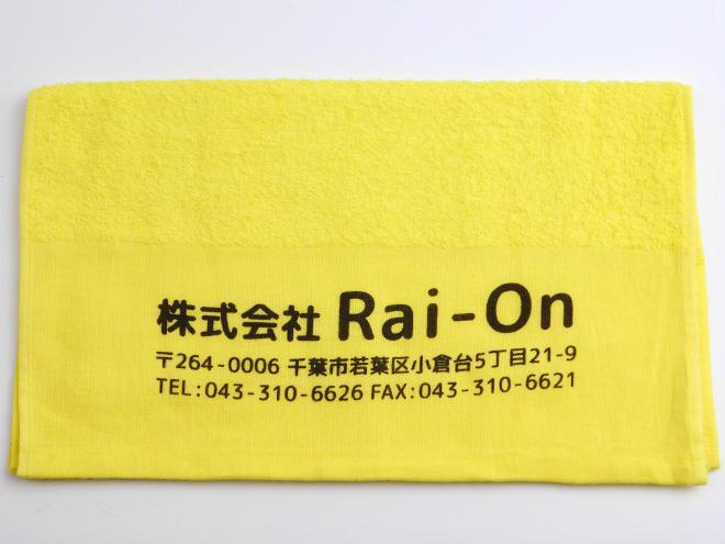 イエローのフェイスタオルを生地として使用した、名入れタオルです。海外製カラータオルのイエローは、国産カラータオルよりも色が薄く、レモンクリームのようなかわいらしい色合いのため女性の方に人気があります!さらに、ブラックのインクでの印刷は生地色を選ばないのが特長です!
